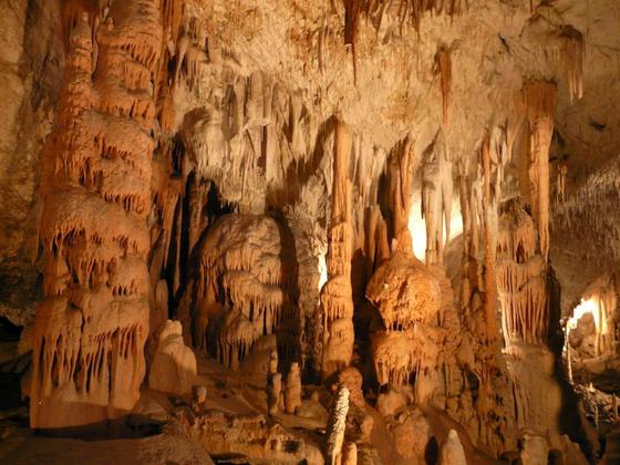 The caves have a grand, wide staircase leading up to the entrance. From here a series of small trains, that look like they belong in an amusement park ride, lead hordes of tourists 5.3 kilometres into the heart of the caves. I buy my ticket and stand alone in the cavernous entrance reading my brochure and waiting for my tour to begin. The tours are given in six languages, it says, and the cave system, once thought to be the largest in the world, is now eighth largest of the known systems. The cave system is over 20 km long, but most of it is not open to the public.